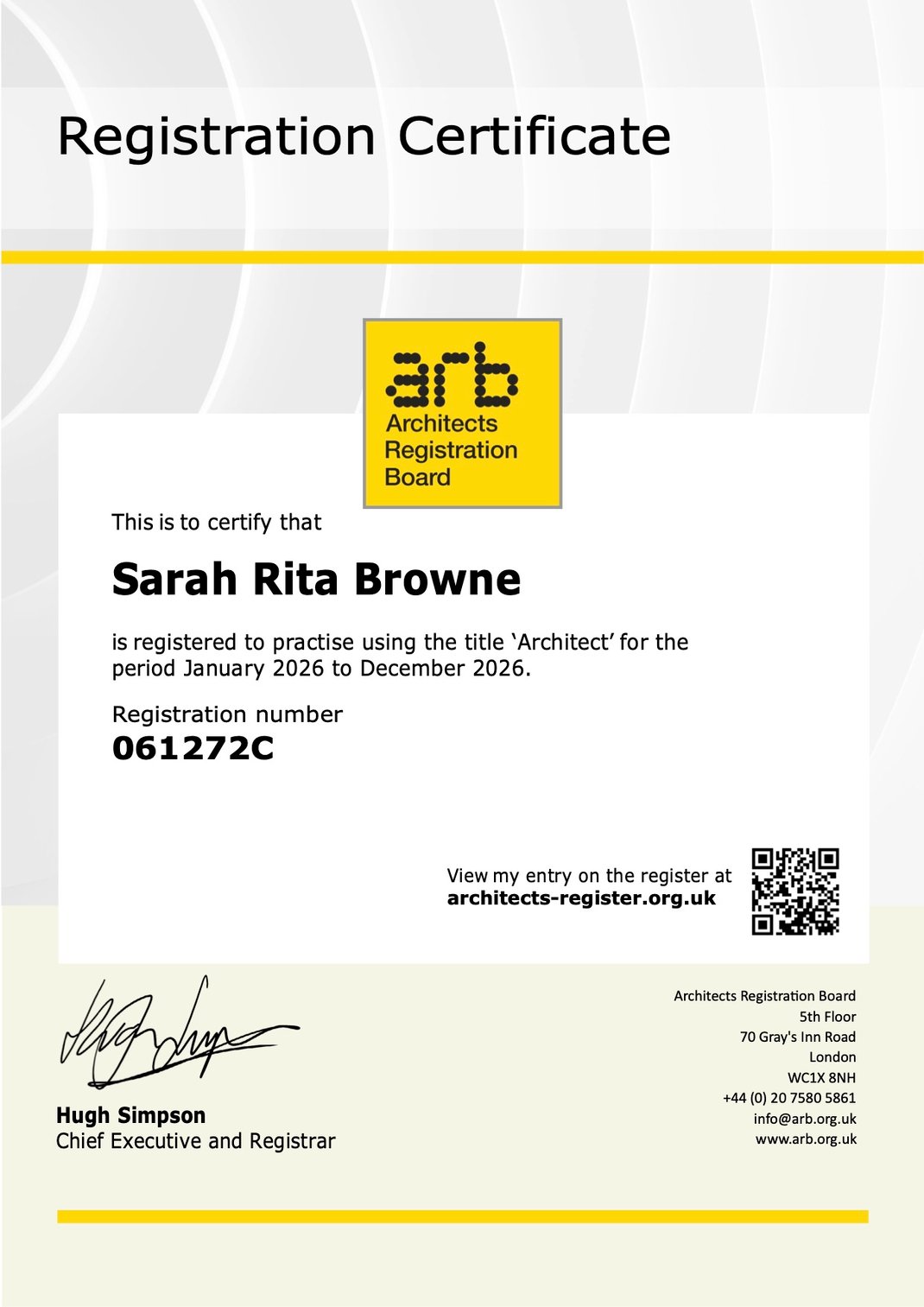 You will find me on the Architects Registration Board at arb.org.uk. Only registered architects are legally allowed to use the title ‘architect’ in business or practice.